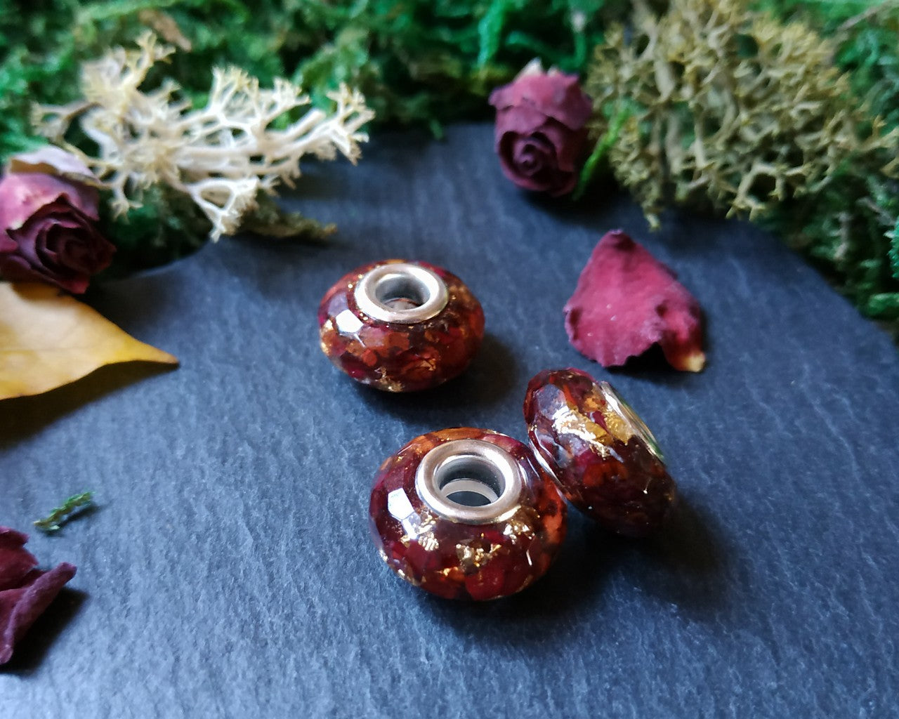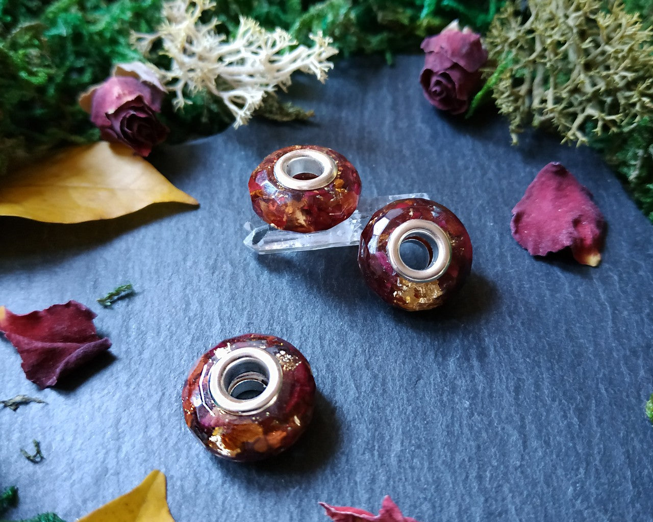 Please note: You are buying one (1) bead with dried rose petals and gold flakes.